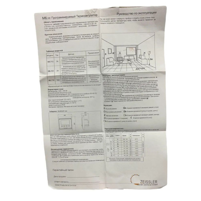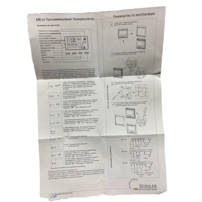 Комнатный термостат Zeissler M6.716 220В/16А без датчика теплого пола. Подходит для управления электрическими теплыми полами.