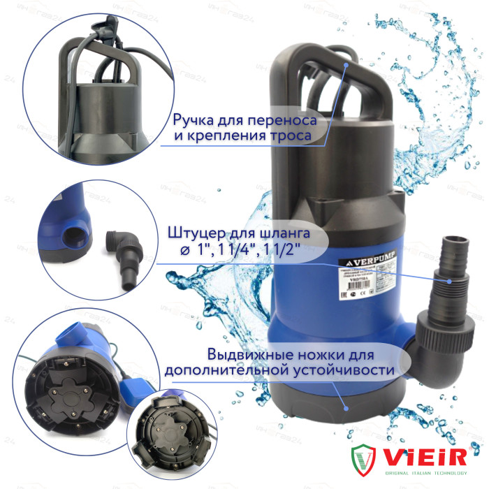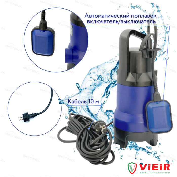 Описание УНИВЕРСАЛЬНЫЙ ПОГРУЖНОЙ ДРЕНАЖНЫЙ НАСОС ДЛЯ ГРЯЗНОЙ И ЧИСТОЙ ВОДЫ 750ВТ "ViEiR" (4шт)