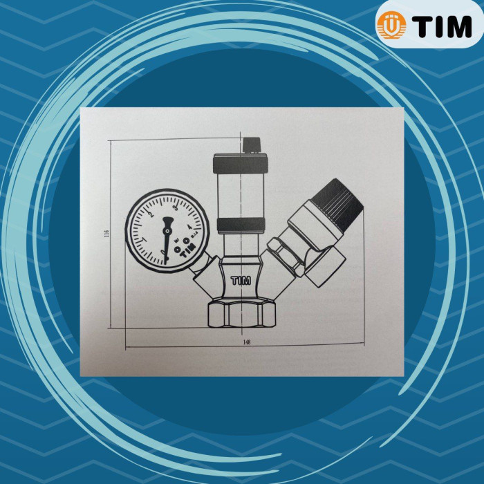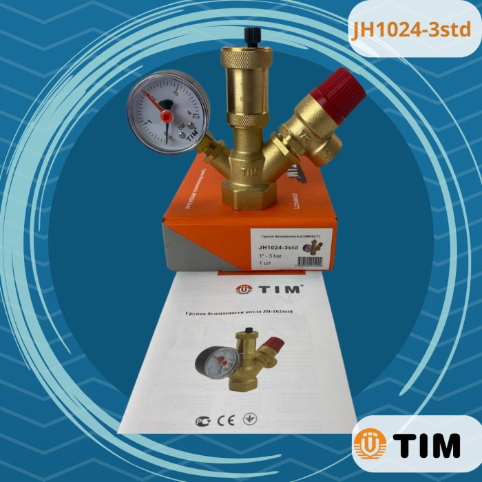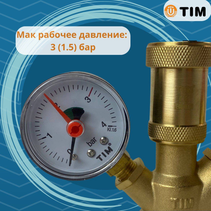 Группа безопасности TIM 1" 3 бара применяется для защиты котла мощностью до 50 кВт от избыточного давления и завоздушивания отопительной системы.