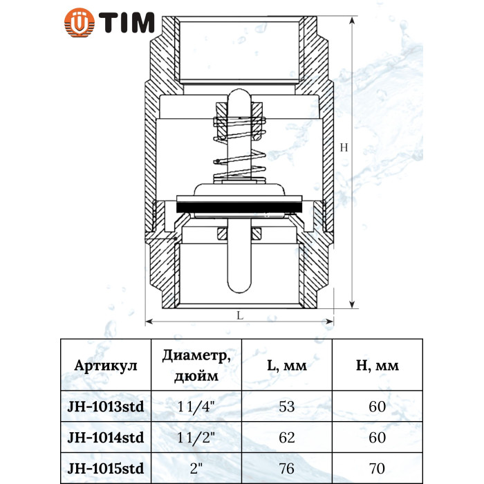 Описание Обратный клапан с латунным штоком, 11/4"г/г (стандарт)(1/40)