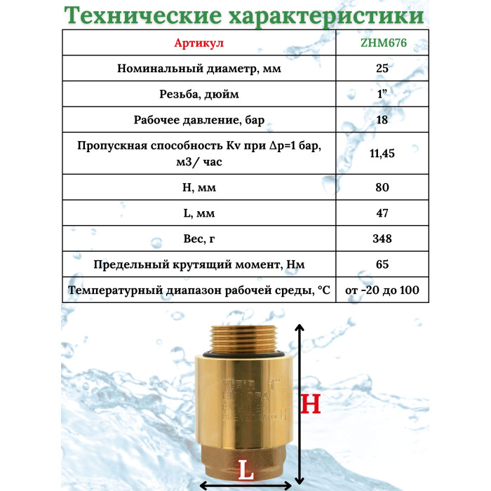 Описание ZHM676 Обратный клапан 1" FxM (64/8шт)