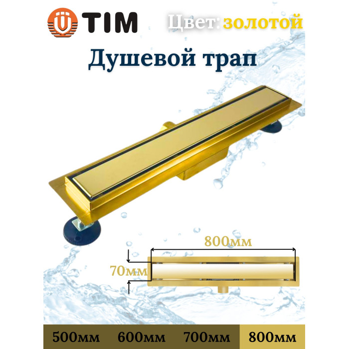 Отзывы о Душевой лоток с решеткой защита от запаха:(сухой +гидрозатвор), глянцевое золото (70*800мм)(1/4)