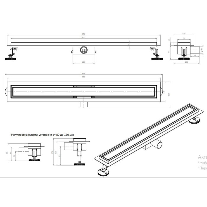 Отзывы о DL90A Душевой лоток под плитку - 900 мм (4/1шт)