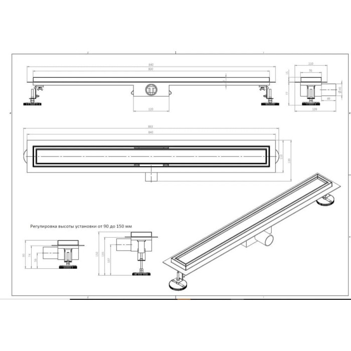Описание Душевой лоток под плитку - 800 мм "VIEIR" (4шт)