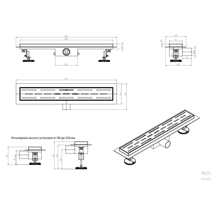 Описание DL50 Душевой трап с сухим затвором - 500мм (4/1шт)