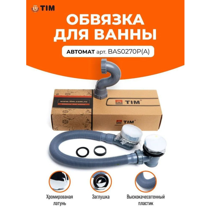 Сифон для ванны TIM BAS0270P(A) пластик.