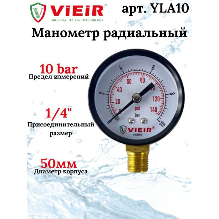 Описание YLA10 Манометр радиальный 10"бар "" (100/1шт)