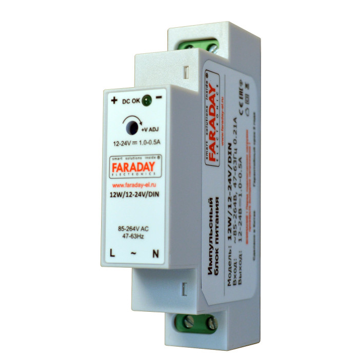 Блок питания импульсный в корпусе на DIN рейку автоматической защитой от перегрузок и перегрева.