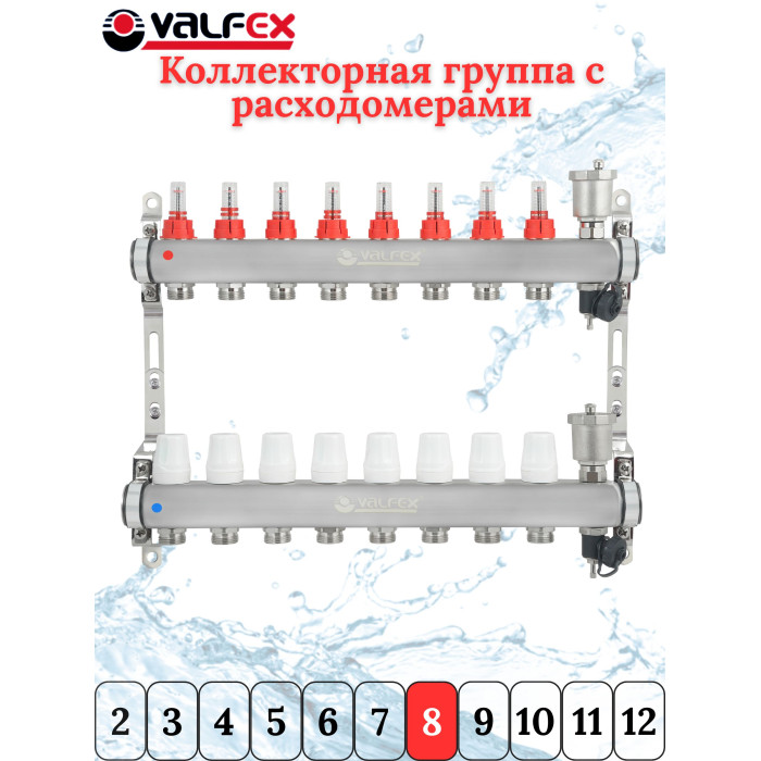 Отзывы о Коллекторная группа НЕРЖ со встр. расх. в сборе, 1"х 8 вых. Евроконус 3/4" VALFEX (2) К