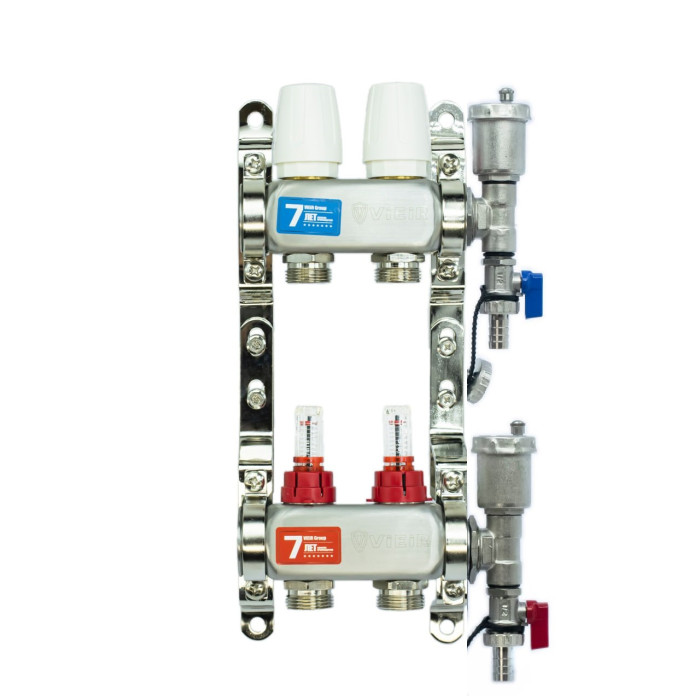 Заказывайте VIEIR Коллекторная группа из нержавеющей стали с расходомерами, без вводных кранов, 2 выхода, 1"х3/4" для надежного монтажа теплого пола с доставкой по всей России!