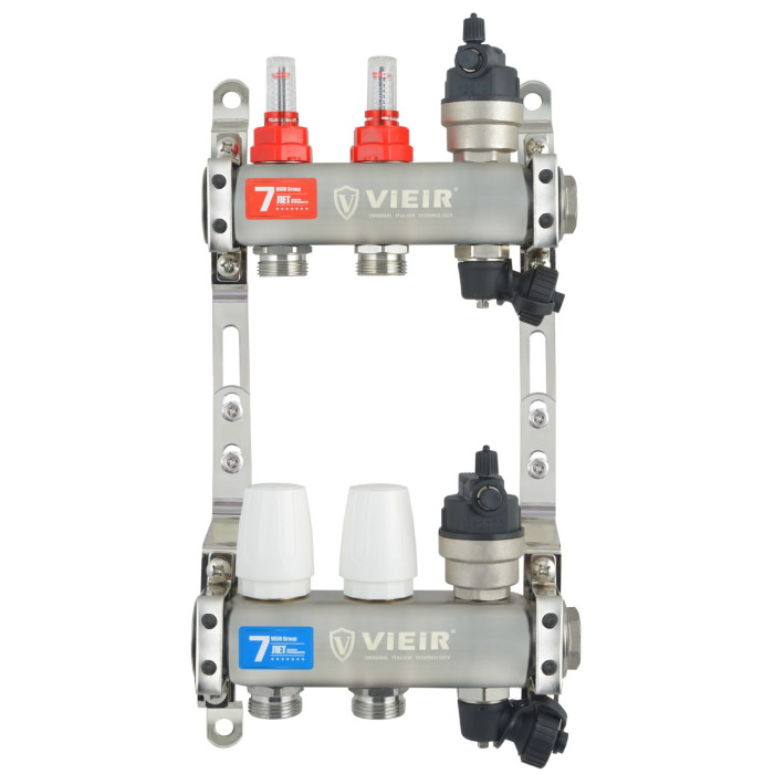 Заказывайте VIEIR Коллекторная группа из нержавеющей стали с расходомерами, без вводных кранов, 2 выхода, 1"х3/4" для надежного монтажа теплого пола с доставкой по всей России!
