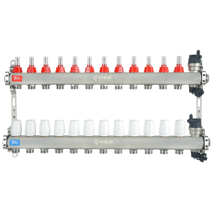 Заказывайте VIEIR Коллекторная группа из нержавеющей стали с расходомерами, без вводных кранов, 12 выходов, 1"х3/4" для надежного монтажа теплого пола с доставкой по всей России!