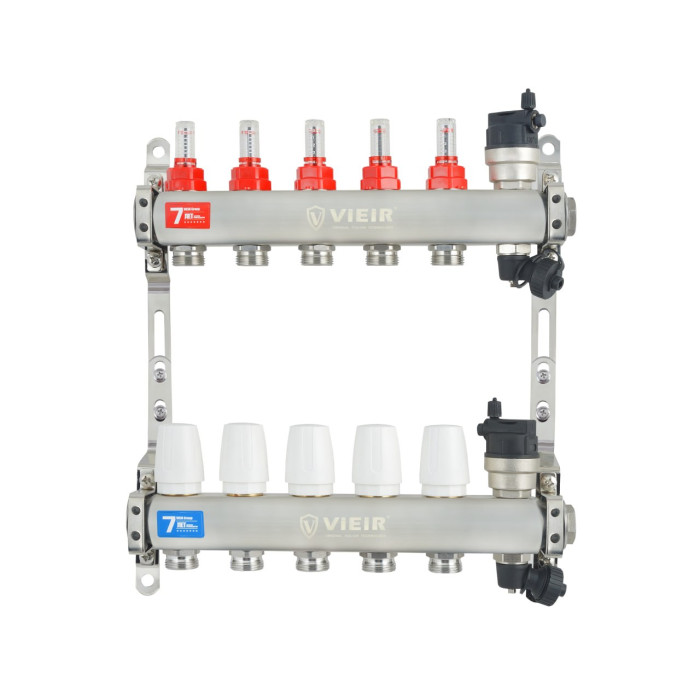 Заказывайте VIEIR Коллекторная группа из нержавеющей стали с расходомерами, без вводных кранов, 5 выходов, 1"х3/4" для надежного монтажа теплого пола с доставкой по всей России!