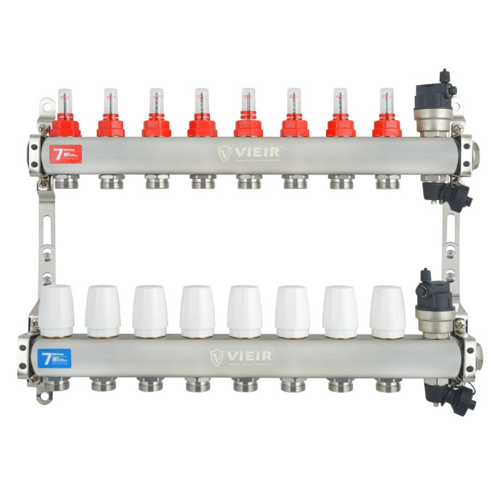 Заказывайте VIEIR Коллекторная группа из нержавеющей стали с расходомерами, без вводных кранов, 8 выходов, 1"х3/4" для надежного монтажа теплого пола с доставкой по всей России!