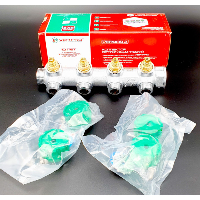 Коллектор регулирующий плоский и 3/4-16-4 вых "VER-PRO"(25/1шт)