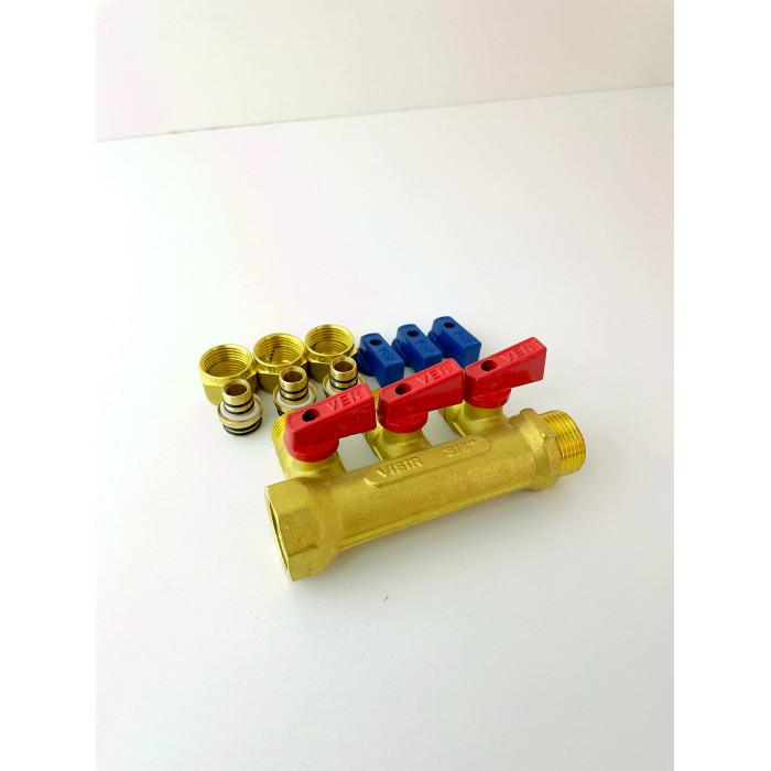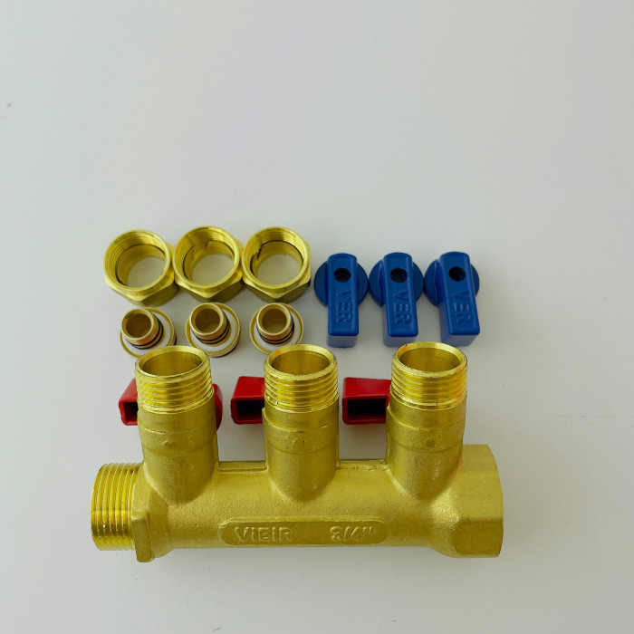 Отзывы о Коллектор с шар. краном 3/4" х 16 - 3 вых..красн.+син. "ViEiR"(30/1шт)