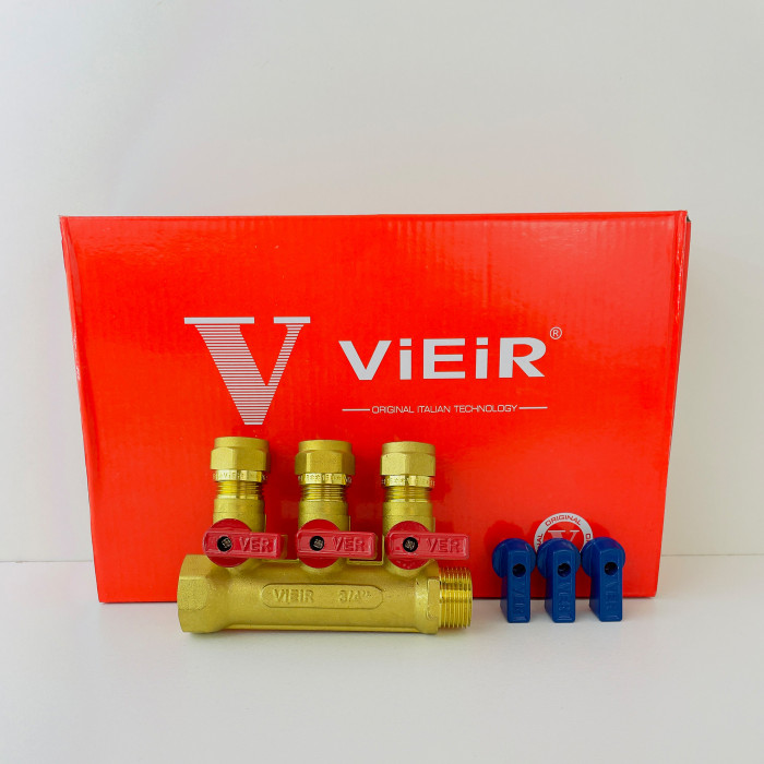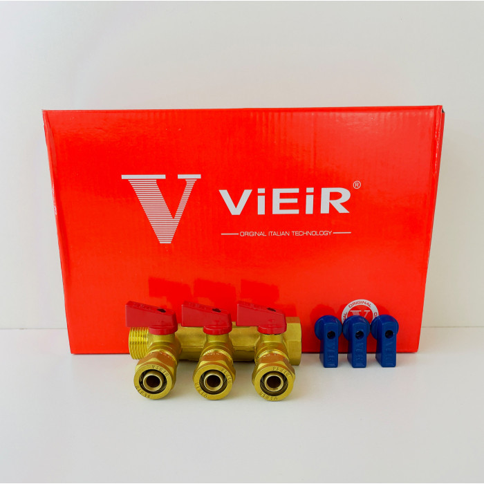 Коллектор с шар. краном 3/4" х 16 - 3 вых..красн.+син. "ViEiR"(30/1шт)