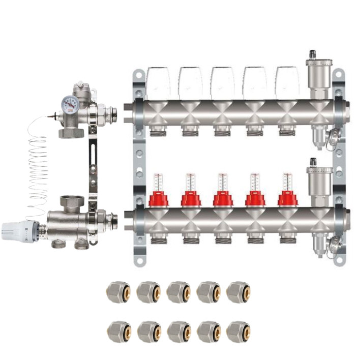 Основные характеристики КОМПЛЕКТ для ВОДЯНОГО ТЕПЛОГО ПОЛА ДО 80 кв/м Коллектор 5 контуров