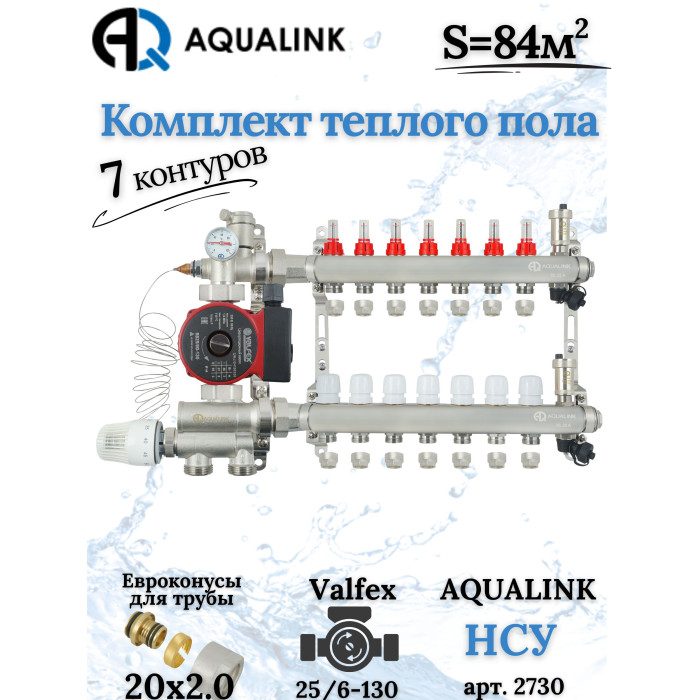 Описание Комплект тёплого пола на 7 конутров, Коллектор+Насос+НСУ+Евроконусы 20x2,0
