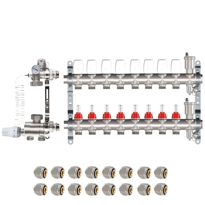 Основные характеристики КОМПЛЕКТ для ВОДЯНОГО ТЕПЛОГО ПОЛА ДО 130 кв/м Коллектор 8 контуров