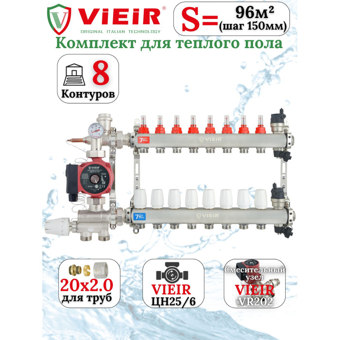 Описание Комплект теплого пола 8 отводов VIEIR - 20x2,0