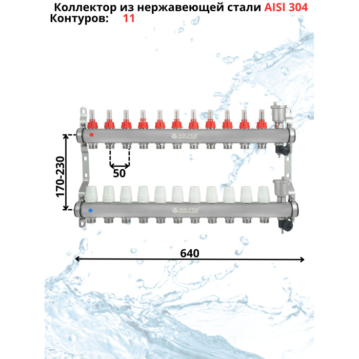 Описание Комплект для теплого пола на 11 контура VALFEX (до 220 м.кв) под трубу 16х2,2