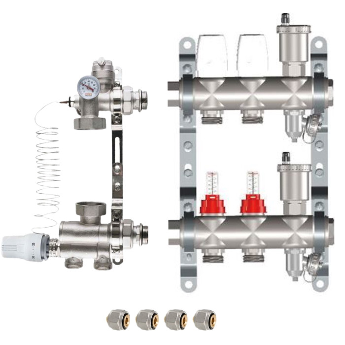 Основные характеристики КОМПЛЕКТ для ВОДЯНОГО ТЕПЛОГО ПОЛА ДО 40 кв/м Коллектор 2 контура