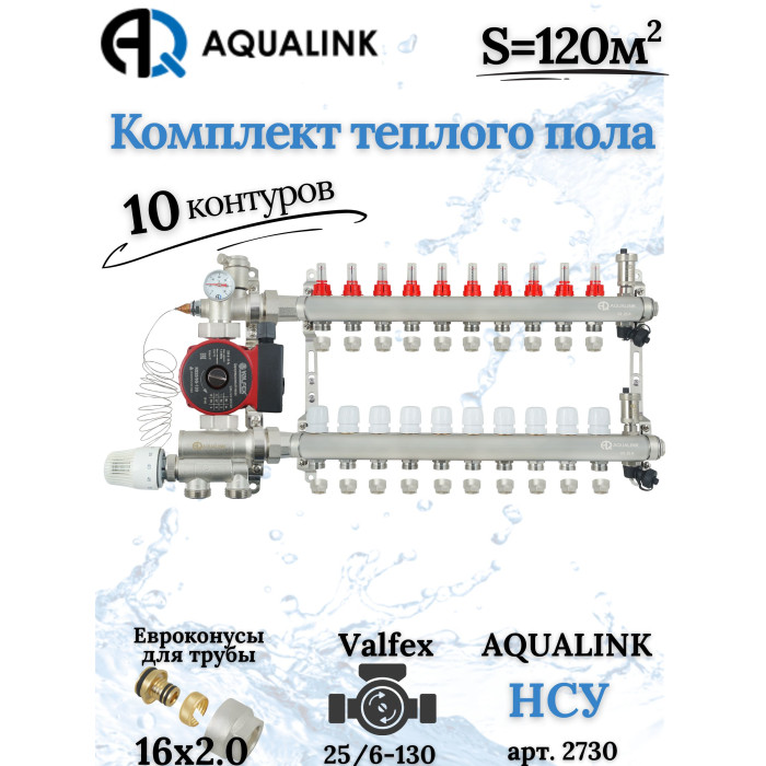 Описание Комплект тёплого пола на 10 конутра, Коллектор+Насос+НСУ+Евроконусы 16х2,0