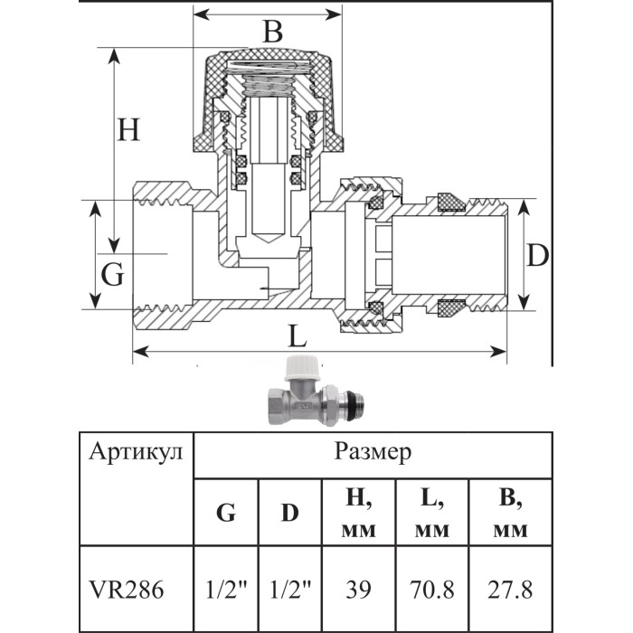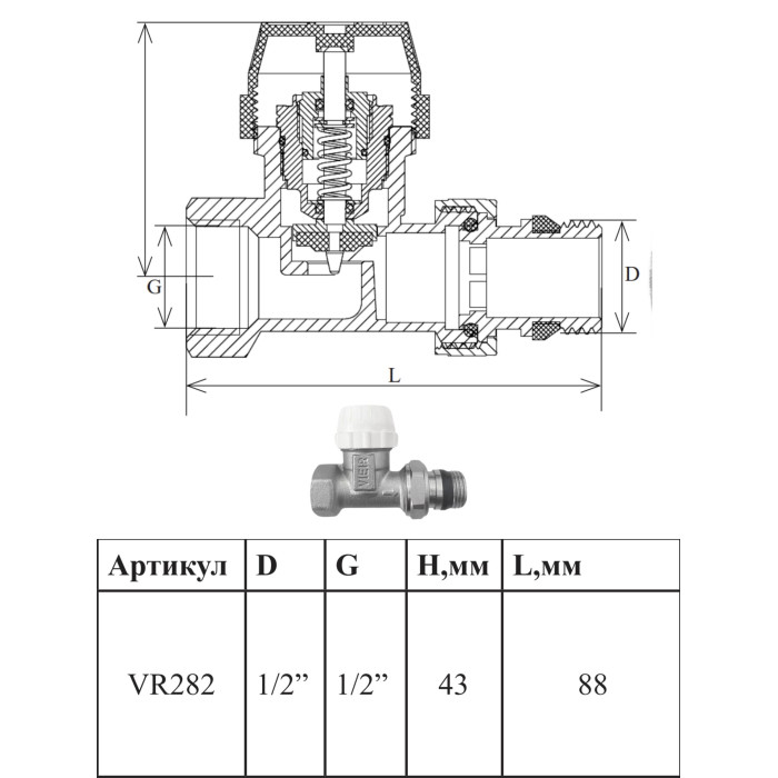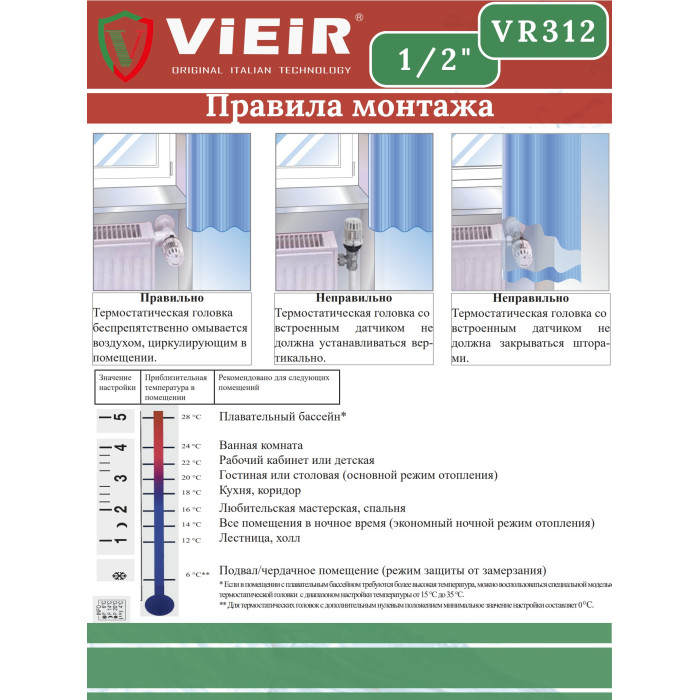 Описание VR312 Комплект терморег. 1/2" ПРЯМОЙ (25/1шт)