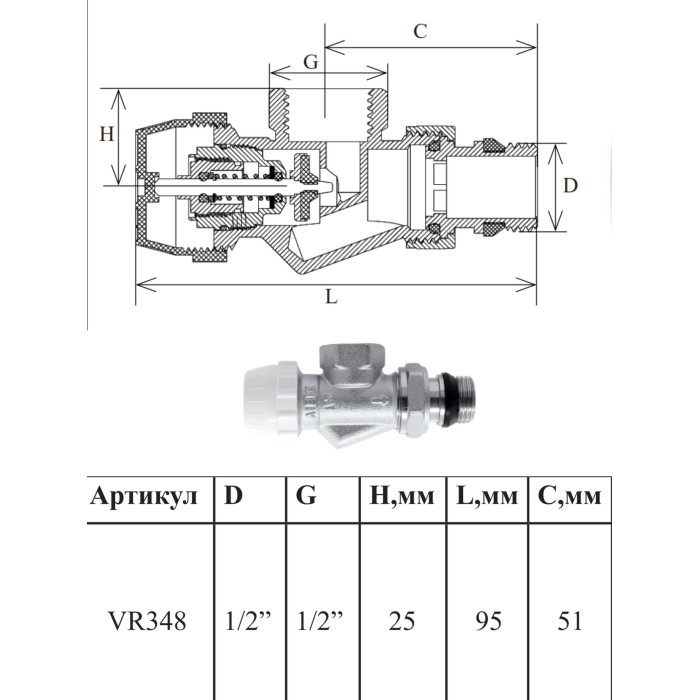 Описание Вентиль термостатический осевой 1/2" "ViEiR"(90/15шт)