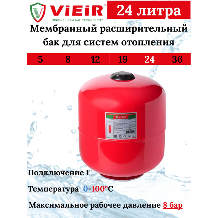 Описание Мембранный расширительный бак для систем горячего водоснабжения и отопления24 L (ВЕРТИКАЛЬНЫЙ) "VIEIR" (1 шт)