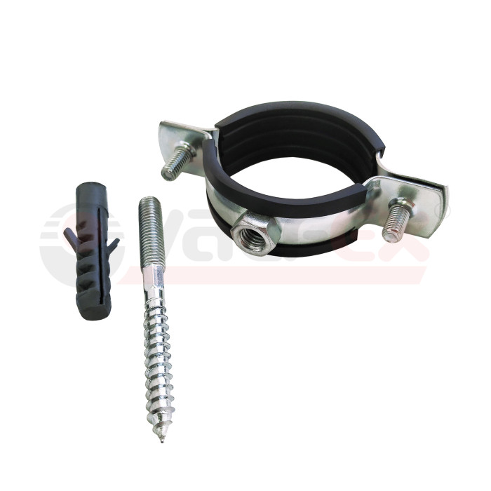 Описание Хомут (РМ) оцинк.с резин. уплотнением VALFEX 1" (32-36) (в компл. шпилька М8*80 и дюбель) (110)