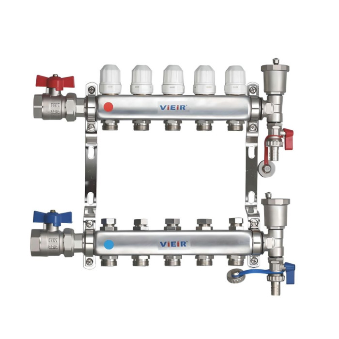 Описание Группа коллекторов без расход. 4 -вых. НЕРЖ.С КРАНАМИ 1"x3/4" "ViEiR" (5/1шт)