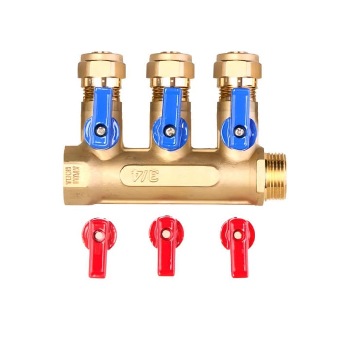 Отзывы о Коллектор с шар. краном 1" х 20 - 3 вых..красн.+син. "ViEiR"(24/1шт)