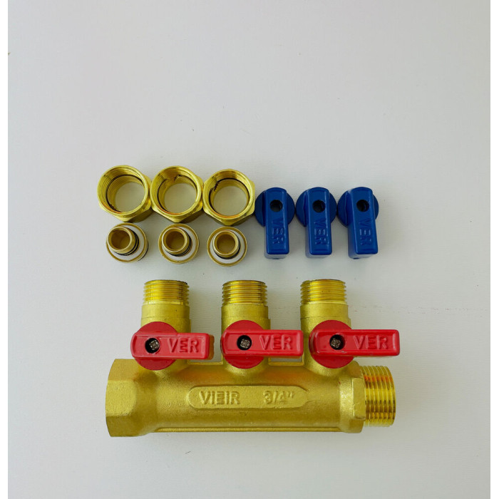 Отзывы о Коллектор с шар. краном 3/4" х 16 - 3 вых..красн.+син. "ViEiR"(30/1шт)