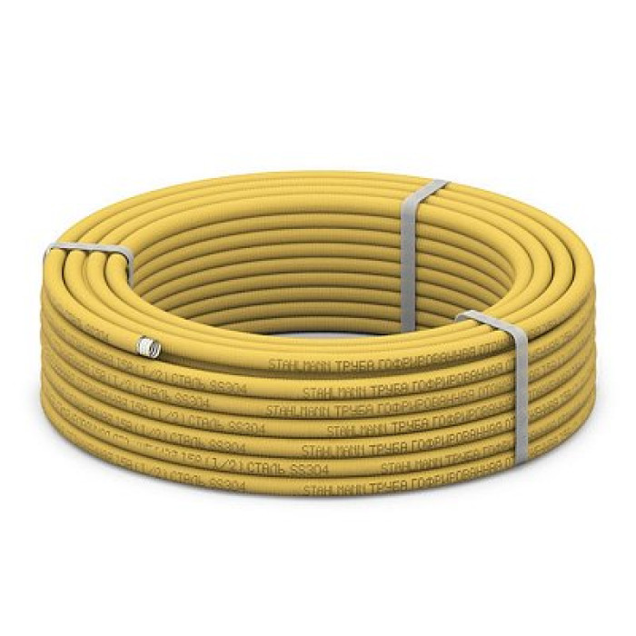 Отзывы о Труба гофрированная из нерж. стали отожженная, в ПЭ оболочке желт. цвета, бухта 30 м, Stahlmann 20А