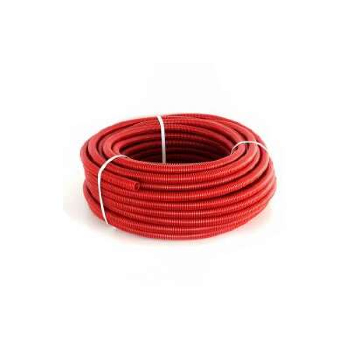 Гофрированная защитная труба Valfex 25x20,4 мм (красный цвет, продается кратно 50 метрам) защищают полимерные водопроводные трубы от возможных механических повреждений при штроблении стен и потолков.
