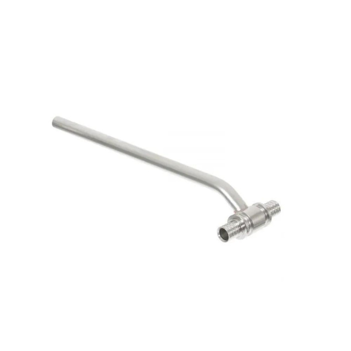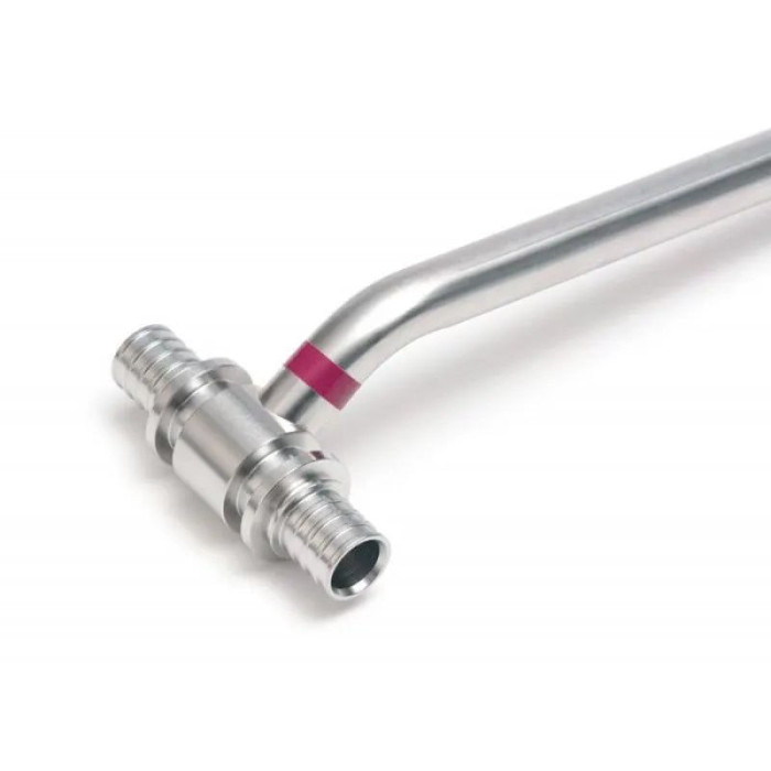 Т-образная форма элемента обеспечивает возможность транзитного (параллельного) подключения нескольких радиаторов в единый контур. С одной стороны трубка монтируется методом аксиальной запрессовки (подвижная гильза), с другой — фиксируется на узле нижнего подключения радиатора через резьбовой адаптер и обжим.
