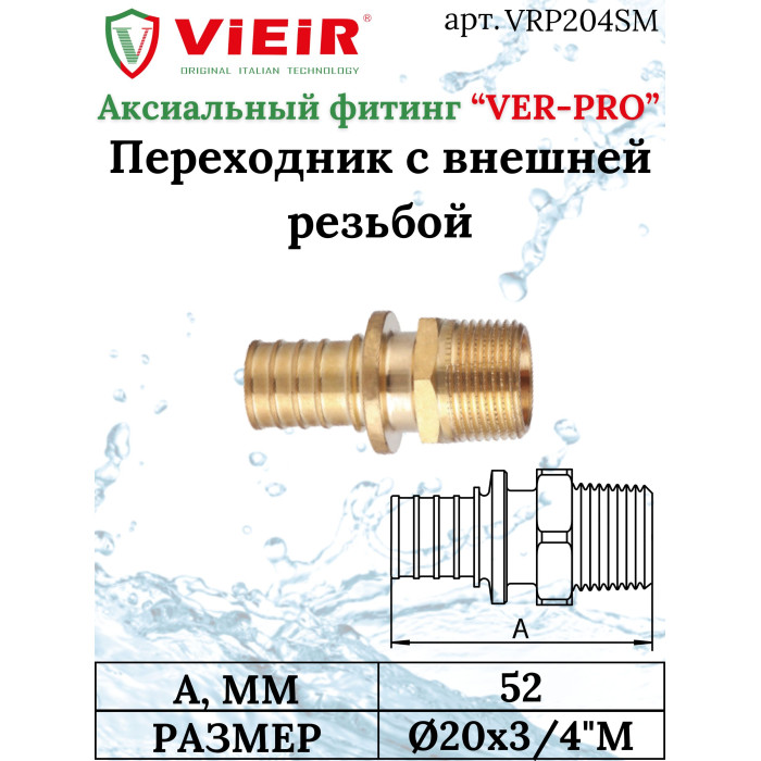 Основные характеристики Переходник на наружную резьбу 20X3/4"НР
