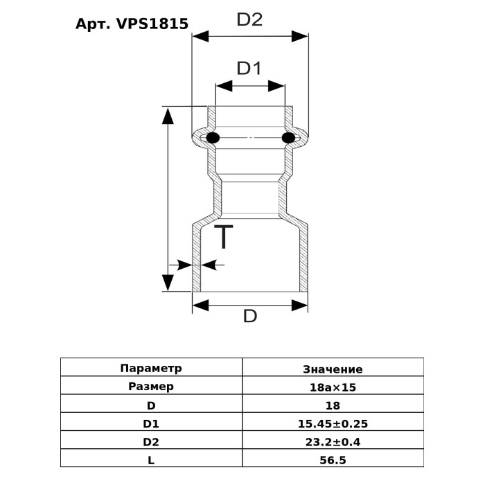 Основные характеристики VPS1815 Вставка переходная18х15 НЕРЖ.(80/5 шт)