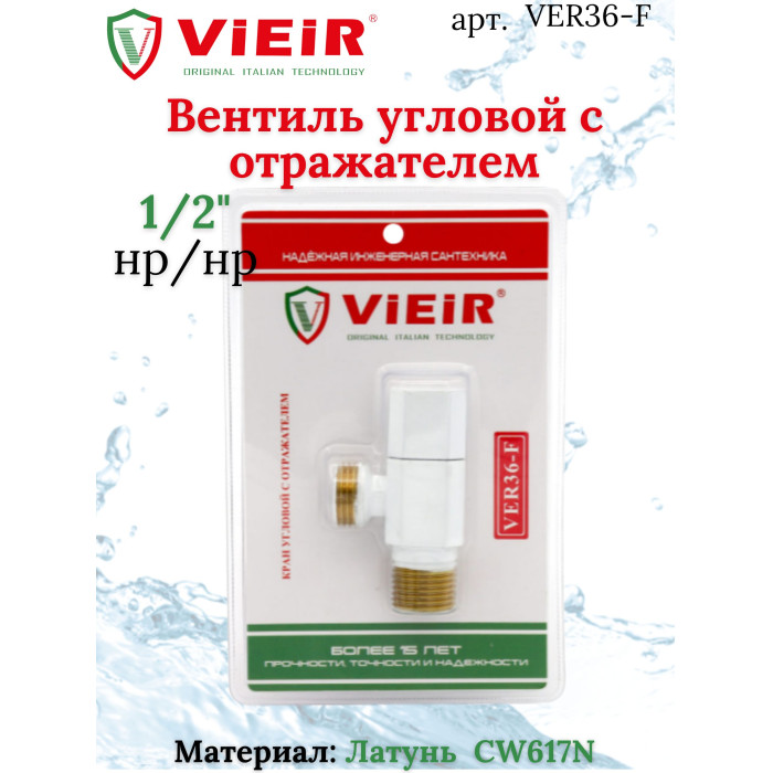Описание Кран угловой с отражателем1/2"x1/2" БЕЛЫЙ"ViEiR" (120/1шт)