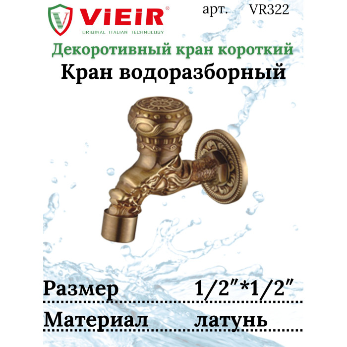Описание Кран с носиком ретро (короткий) декор/бронза "ViEiR" (50/1шт)