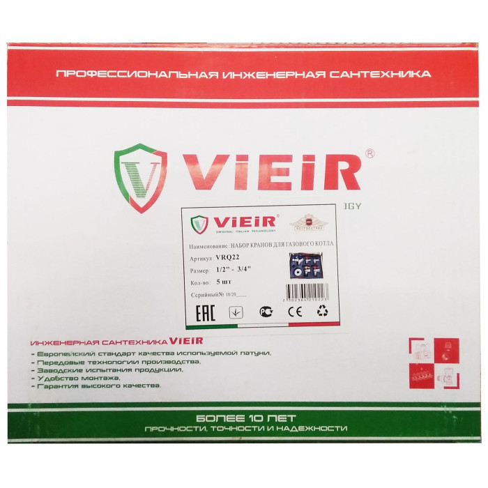 Отзывы о Набор кранов для газового котла 1/2-3/4 "ViEiR" (20/1шт)