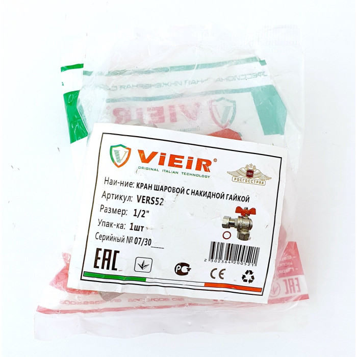 КРАН ШАРОВОЙ С НАКИДНОЙ ГАЙКОЙ "VIEIR"