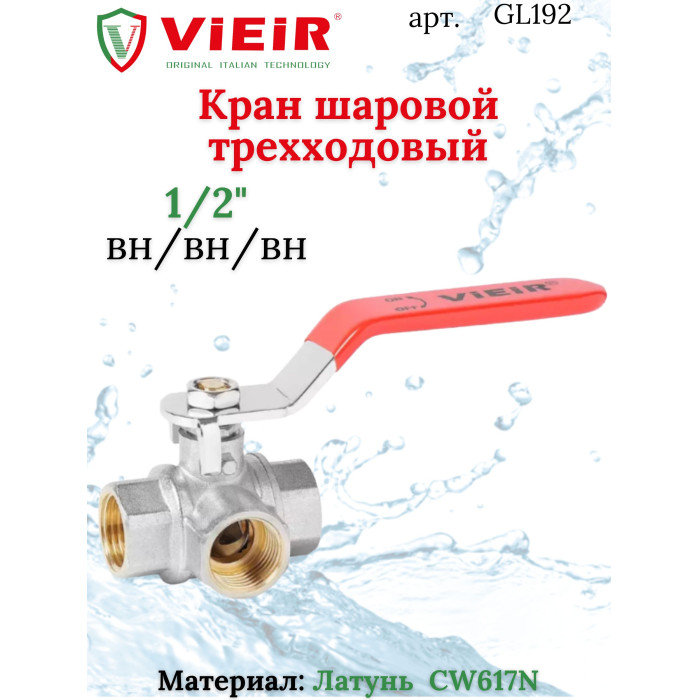 Описание GL192 Кран шаровой трехходовой 1/2" (64/8шт)