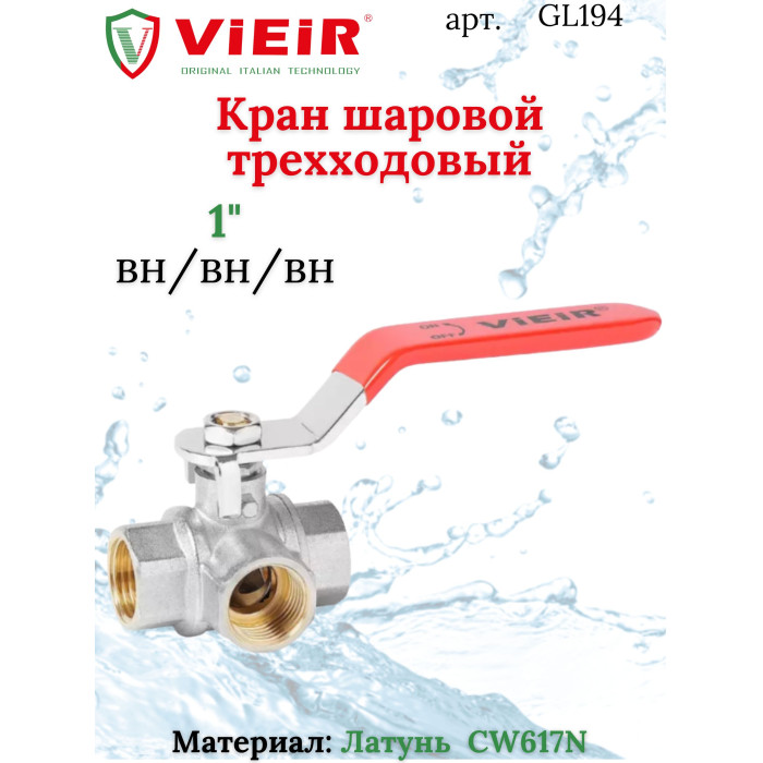 Описание Кран шаровой трехходовой 1" "ViEiR"(30шт)