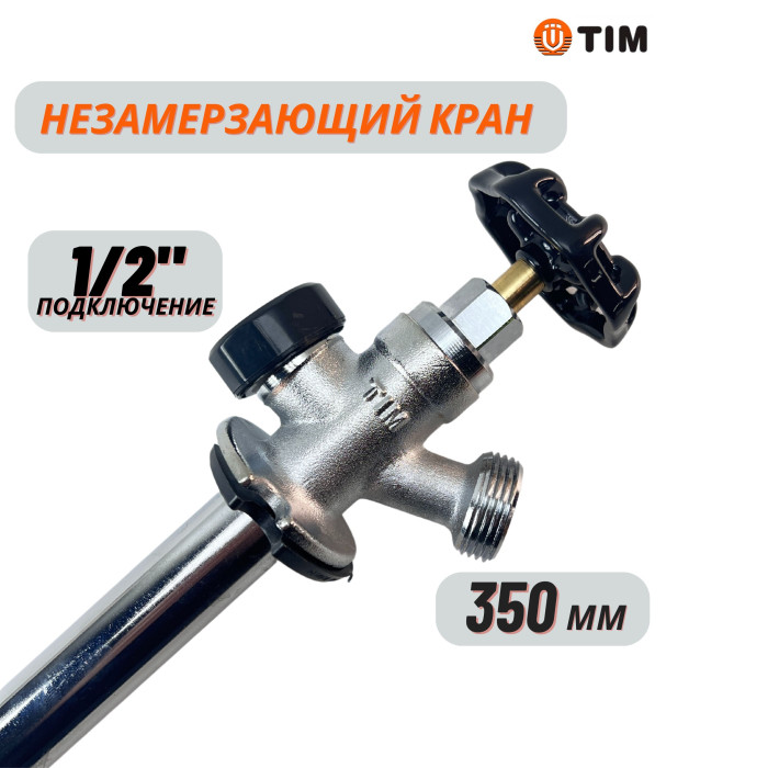 Кран незамерзающий для стен (350 мм) TIM применяется для круглогодичного использования. Запорная часть крана находится в помещении, а внешний кран и излив находятся на улице. Монтаж крана происходит с уклоном в сторону улицы. При прекращении подачи воды, ее остатки вытекают на наружу, поэтому крану не страшны отрицательные температуры.